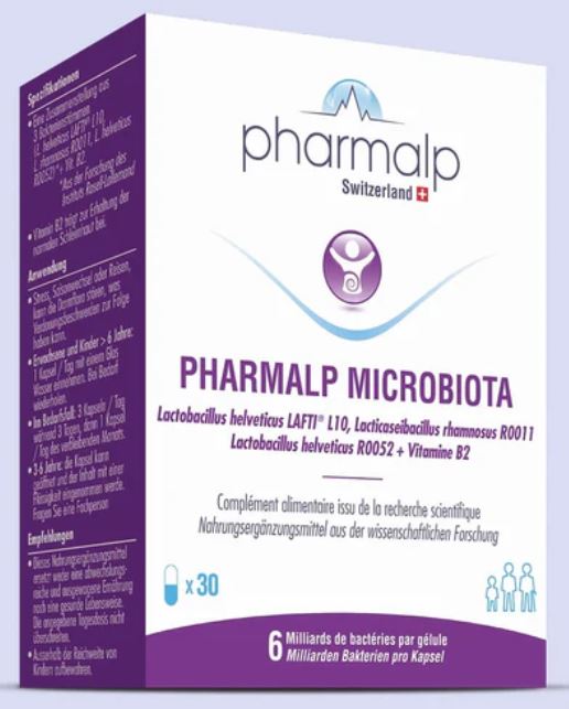 以3 種菌株和維生素 B2為基礎的微生物群食品補充劑。